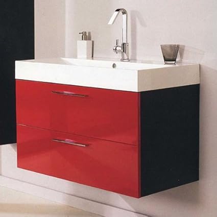 Hudson Reed Contrast Wall Mounted 900mm Wide High Gloss Red Black Finish Cabinet Bathroom Vanity Unit With Poly Marble Basin Sink 2 Soft Closing Drawers Amazon Co Uk Kitchen Home from images-na.ssl-images-amazon.com Double sink or single sink vanities, with tops and mirrors. Look to vitreous china for a glassy splendor or the rich grain of walnut and slab cabinets to elevate your bathroom vanities. Small vanities & sinks you can squeeze into even the tiniest bathroom. Now that the vanity has a facet installed and hole for the sink, you can install the sink for the last time. Check out our extensive range of bathroom sink vanity units and bathroom vanity units. Yes, we do red bathroom vanities! See more ideas about bath vanities, bathroom design, bathroom decor. The cabinet is furniture grade pine, finished with a smooth finish, to hold up well in the bathroom moisture.
